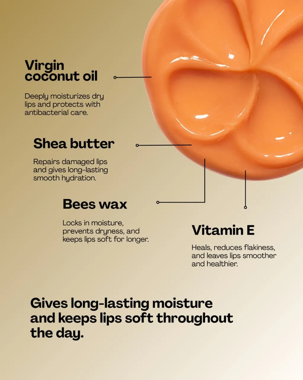 Moisturization | Soft and Naturally Brightens Lips | Extra virgin coconut oil + Beeswax + Orange peel Extract | Petroleum jelly free | Lip balm for Dry & Dark Lips | For Women | 10 gm