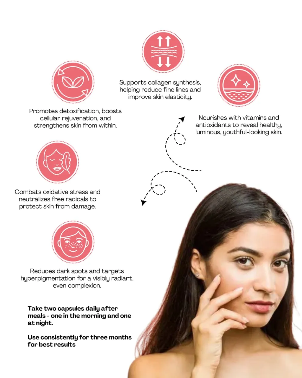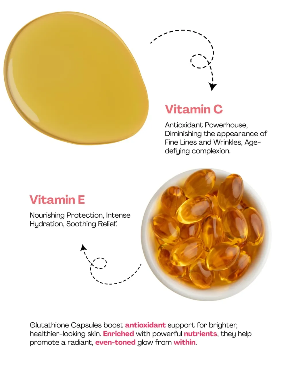 MENI L-Glutathione Capsules For Skin Brightening | Antioxidant Support |Healthy & Radiant Skin| Enriched with L-cystine, Resveratrol, Vitamin C, E, Hyaluronic Acid, Niacinamide| Supplements for Men and Women | 60 Glow veg capsules