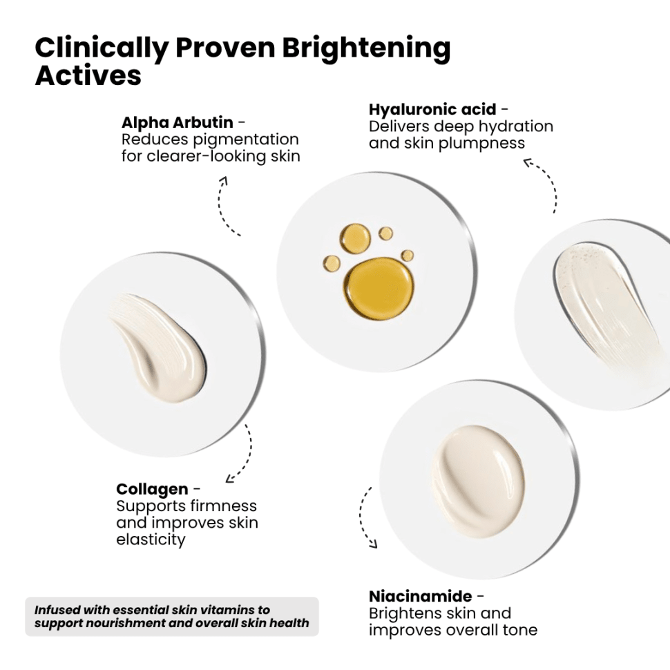 It has a creamy texture and gives a shine when you apply it. But soon gets absorbed into the skin and leaves a matte finish with no residue. Better than the big brand costly products. Would highly recommend it to anyone looking for a suitable brightening cream.