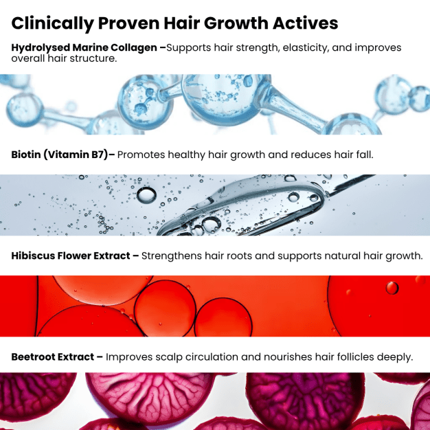 Hair Fall Reduction| Hair Regrowth | Strengthen Hair Follicles | Enriched with Biotin (Vitamin B7), Vitamin C, Hibiscus flower, Beetroot | Supplements for Men and Women | 60 Collagen capsules.
