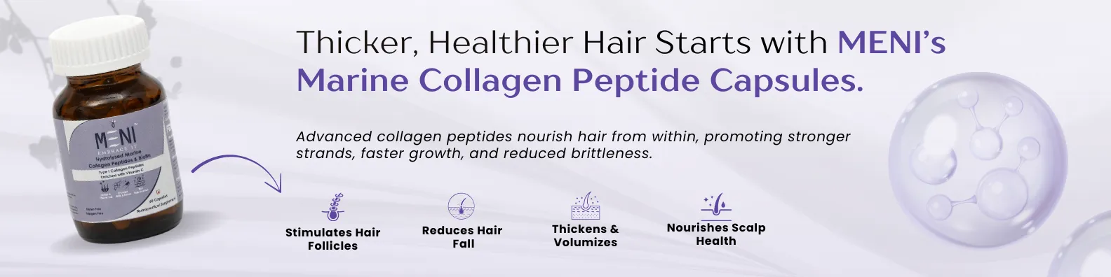 These Meni’s collagen capsules have exceeded my expectations in improving my skin, hair, and nails. I started taking them to address my concerns with dry hair, skin and weak nails, and the results have been impressive. Especially my hair started to grow lengthy and reduced hair fall. Its just wow product for me.
